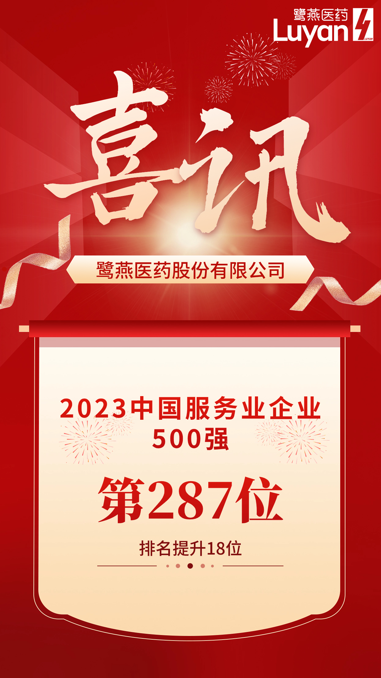 鷺燕醫(yī)藥榮列2023中國服務(wù)業(yè)企業(yè)500強第287位