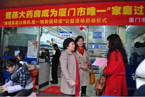 2012年3月15日上午,由廈門市食品藥品監(jiān)督管理局和廈門鷺燕大藥房有限公司聯(lián)合發(fā)起的“清理家庭過期藥、綠色健康倡環(huán)?!惫婊顒?dòng)啟動(dòng)儀式在鷺燕大藥房前埔分店舉行。本次活動(dòng)的主旨是倡導(dǎo)健康環(huán)保,同時(shí)給廣大人民群眾營(yíng)造一個(gè)安全健康的用藥環(huán)境,有效減少因過期藥品使用給家庭帶來(lái)的健康傷害。