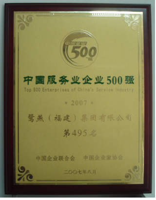 鷺燕集團近日捷報頻傳,在剛剛榮獲了“2007廈門企業(yè)100強”之后,再次躋身于“中國服務(wù)企業(yè)500強”之列。我集團已連續(xù)兩年獲此殊榮。